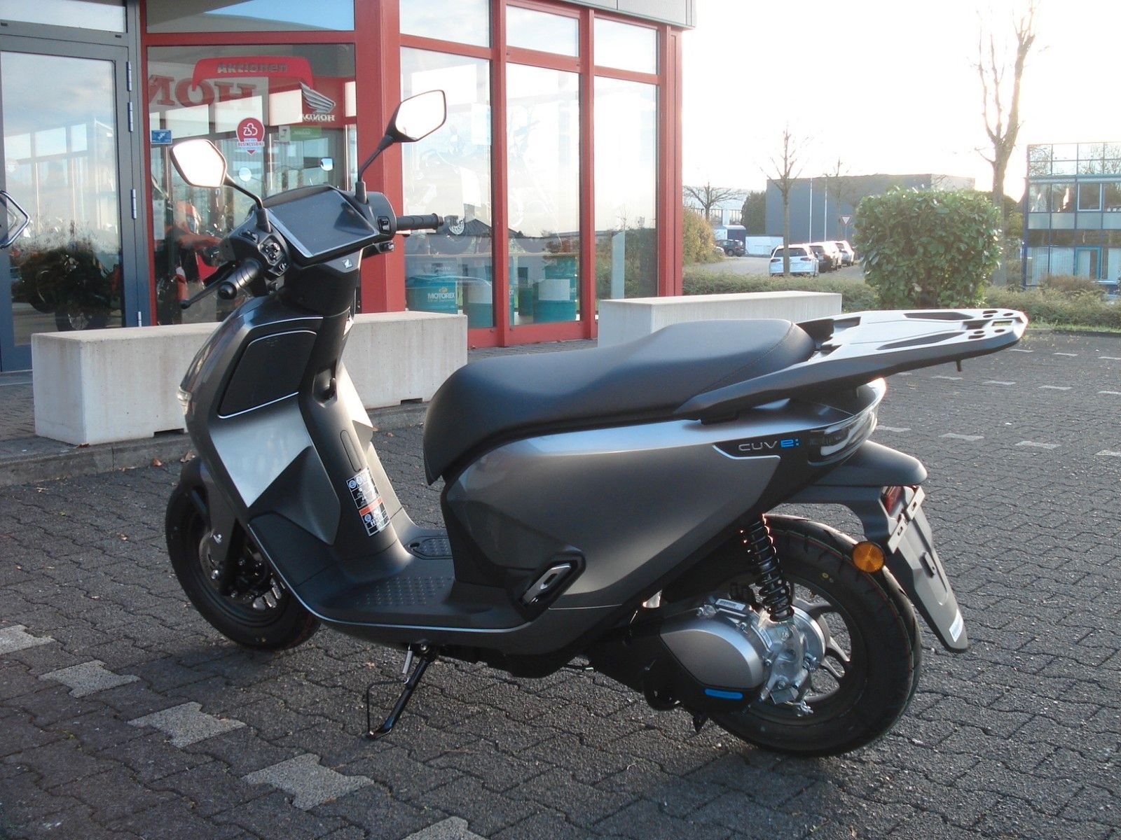 Bring dein smartes Mobilitätsleben auf die nächste Stufe mit dem CUV e:. Mit seinem schnittigen, futuristischen Design, genug Reichweite für den Alltagseinsatz, dem flachen Durchstieg und dem einfachen Batterietausch zu Hause oder unterwegs ist dieser Roller perfekt für das geschäftige Stadtleben. Anspruchsvolles futuristisches Design fügt sich in jeden Aspekt des täglichen Lebens ein.?Das stilvolle und benutzerfreundliche Design des CUV e: verbindet Funktionalität und Schönheit und macht die tägliche Mobilität intelligenter.Hondas einzigartiger Elektromotor mit einer maximalen Leistung von 6 kW (8,2 PS) ist kraftvoll genug für stark befahrene Autobahnen. Seine Geräuscharmut und seine dynamische Leistung sorgen für ein noch nie dagewesenes Fahrerlebnis. Die leicht herausnehmbare und hochzuverlässige austauschbare Batterie verfügt über ein fortschrittliches Batteriemanagement für eine breite Palette von Anwendungen. Konnektivität Jederzeit und überall. Immer verbunden. Funktionen wie Navigationskarten, EV-optimierte Routenplanung, batterieschonende Routenvorschläge und der Zugriff auf Musik und Telefon machen jede Fahrt angenehmer. Die neue Honda RoadSync Duo App bietet intelligente Wettervorhersagen, Nachbarschaftsinformationen, Sicherheitswarnungen, Diebstahlschutz und viele weitere Funktionen, die die Fahrt einfacher machen. Finanzierung auch ohne Anzahlung möglich.